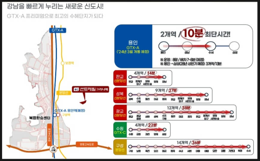 --> GTX-A 용인역(24년 예정), 용인역 복합환승센터(29년 예정) 마북 IC 약 4분. 신갈 JC 약 20분 소요