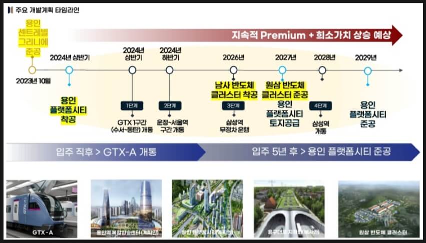 용인 센트레빌 그리니에는 GTX-A와 용인 플랫폼시티 개발의 수혜단지로, 용인 플랫폼시티의 주거용지 비율은 약 1.20%로 근로자 주거시설이 부족한 상태입니다.