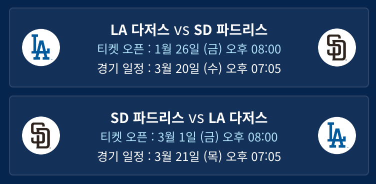 오후 12시: LA 다저스 vs 키움 히어로즈 오후 7시: 팀 코리아 vs 샌디에이고 파드리스