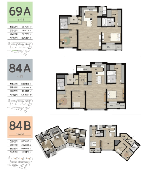 북촌 PH159는 세 가지 주거 타입을 제공합니다: 69㎡, 84㎡, 99㎡ 타입으로, 입주민들은 필요에 따라 효율적인 공간 활용이 돋보이는 구조를 선택할 수 있습니다. 69 타입은 2개의 침실과 드레스룸, 다용도실이 마련되어 있고, 거실과 주방이 연결된 구조로 실용적입니다. 84 타입은 침실 3개, 99 타입은 팬트리 공간이 추가 제공되어 각 세대의 라이프스타일에 최적화된 구성을 자랑합니다. 또한, 거실에서 보이는 골프장 전망은 다른 곳에서는 찾기 어려운 독특한 매력입니다.