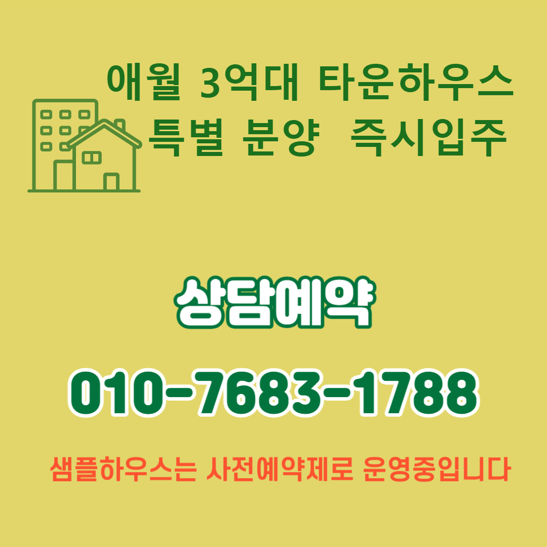 애월 타운하우는 특별분양 중이며, 숲세권 타운하우스를 합리적인 가격에 소유할 수 있는 절호의 기회입니다. 마지막 1세대 3억대로 분양 중이니 관심 있는 분들은 서둘러 문의해 주시기 바랍니다.
