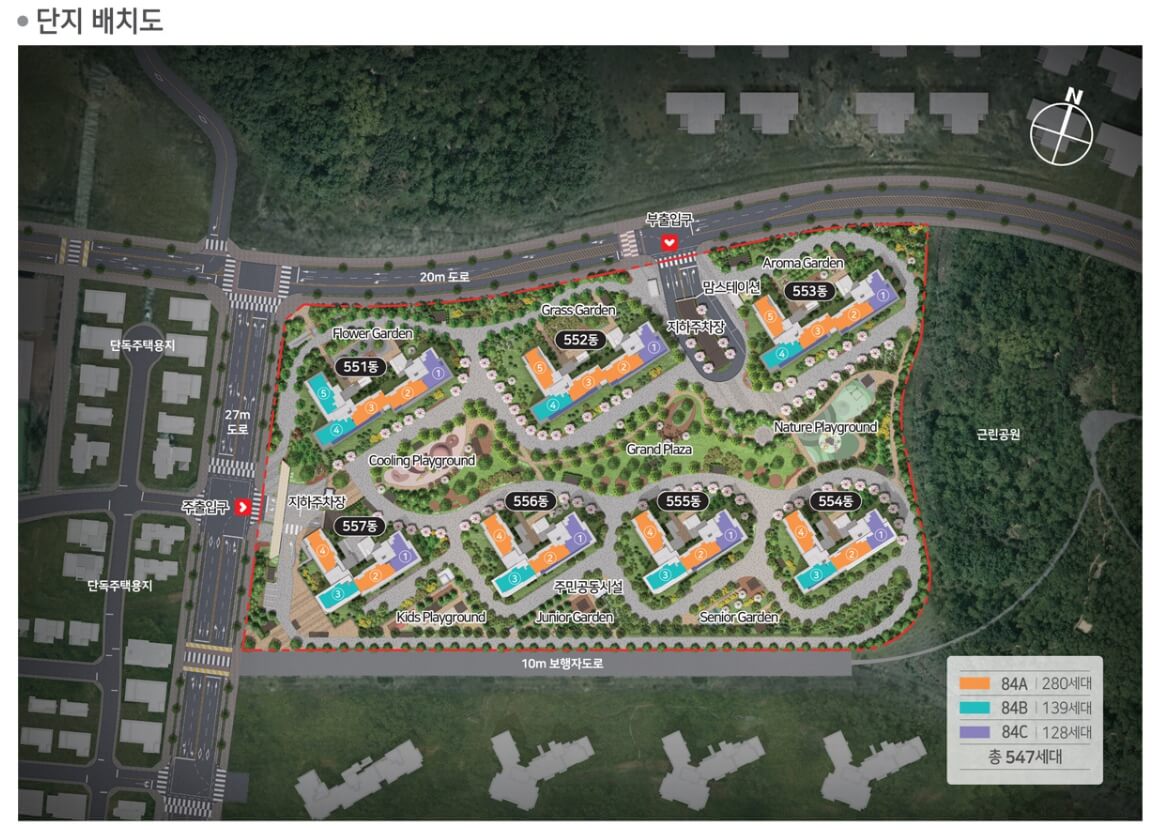 단지는 특화설계를 대거 적용하여 주거 편의성을 고려한 5 Bay 평면 및 남향 위주 설계로 쾌적한 주거공간을 제공하며, 어린이집, 유아놀이터, 맘스스테이션 등의 커뮤니티가 조성돼 자녀를 둔 가구에게도 편리한 환경을 제공할 예정이다.