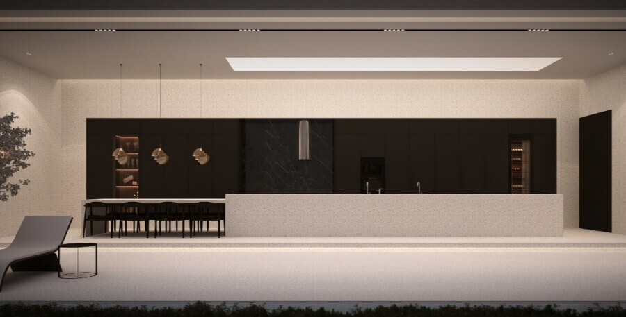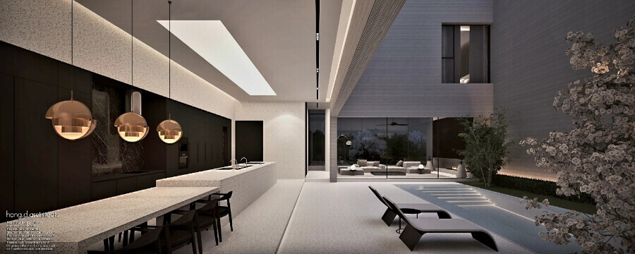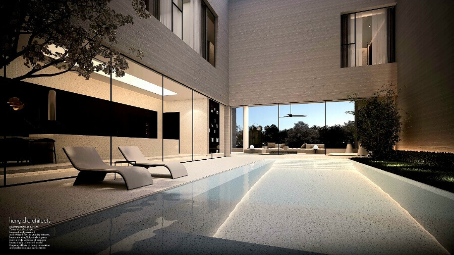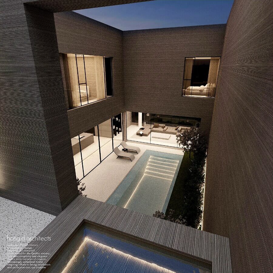 1층은 중정가든의 수영장을 중심으로 주방, 다이닝룸, 거실, 서재가 연결되어 있어 넓고 쾌적한 공간감을 제공합니다. 2층은 마스터존과 주니어존으로 구분되어 있으며, 침실 3개와 욕실 2개로 구성된 독립적인 공간을 제공합니다. 또한 옥상정원에서는 제주 자연의 아름다움을 만끽할 수 있는 프라이빗 힐링 공간을 제공합니다.