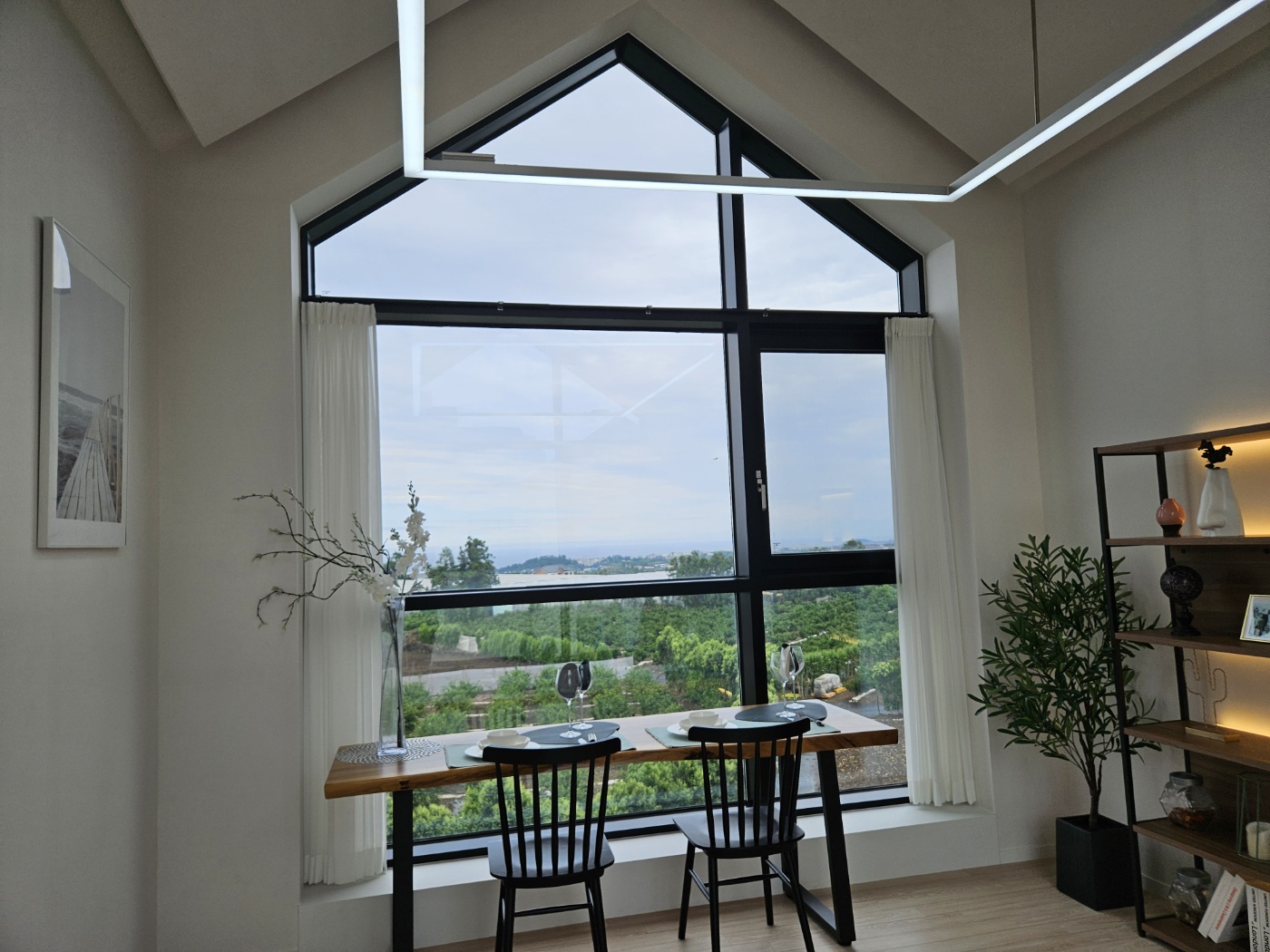 각층 각방 개별난방 시스템과 각층별 인터폰, 시스템 도어락이 설치되어 있으며, 창호는 LG지인시스템과 이건창호 제품을 사용하여 고품질의 주거 환경을 유지합니다. 이러한 최신 시스템은 제주 타운하우스를 찾는 분들에게 편리하고 안전한 생활을 보장합니다.