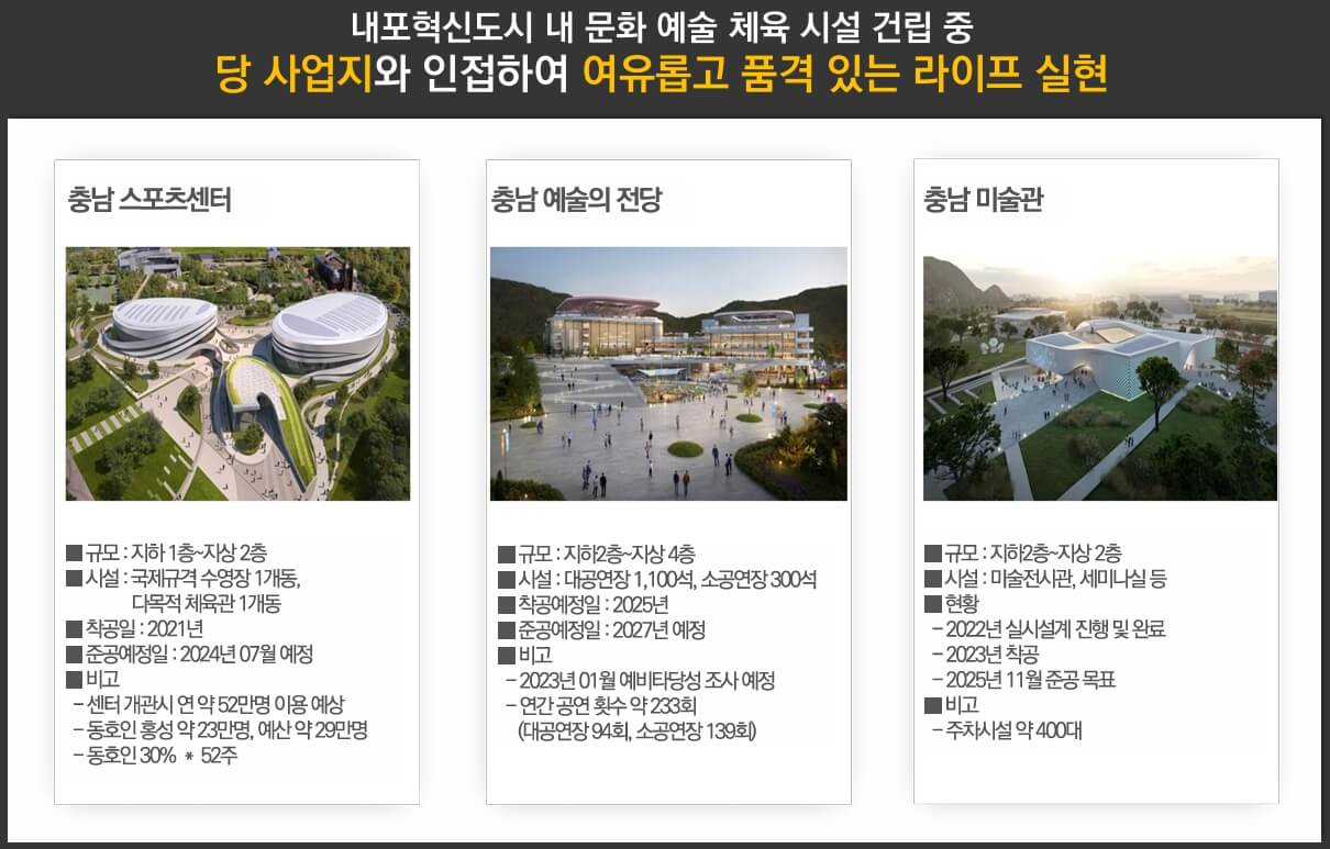 내포신도시 대방 3차는 주변 인프라와의 연계성으로 미래가치가 높은 투자지로 주목받고 있습니다. 교육 시설과 공공기관, 병원 등이 인접해 있어 안정적인 생활을 보장합니다. 미래를 대비한 투자와 편안한 삶을 동시에 누릴 수 있는 곳, 그것이 내포신도시 대방 3차입니다.