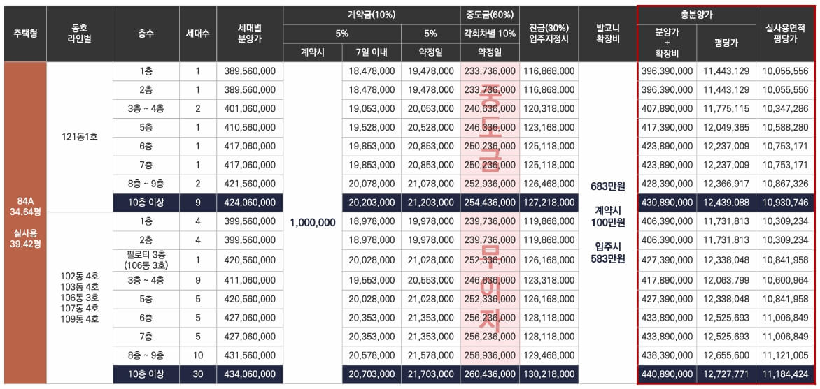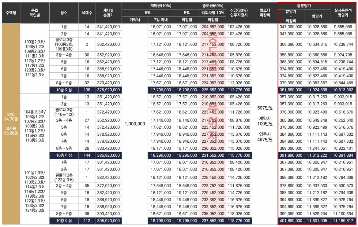 디에트르는 총 3개의 유형으로 구성되어 있으며, 각각의 분양가와 세대수는 다음과 같습니다.