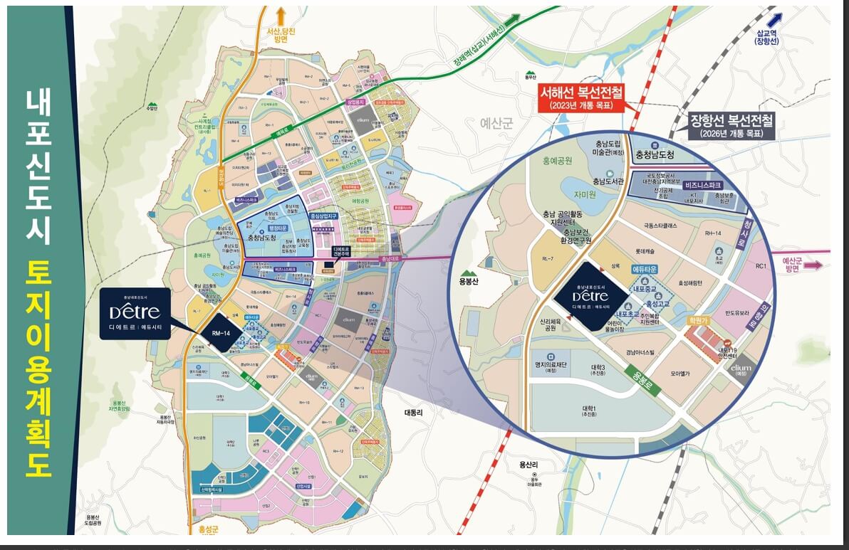 디에트르는 환황해권의 중심도시인 내포신도시에 위치하고 있습니다. 공공기관의 이전을 통해 유관기업이 유치되고, 탄소중립시범도시로서의 역할을 수행할 것으로 예상됩니다. 또한 대학 및 대학병원이 조성될 예정이며, 환경기술 연구 및 개발 클러스터가 구축될 예정입니다.